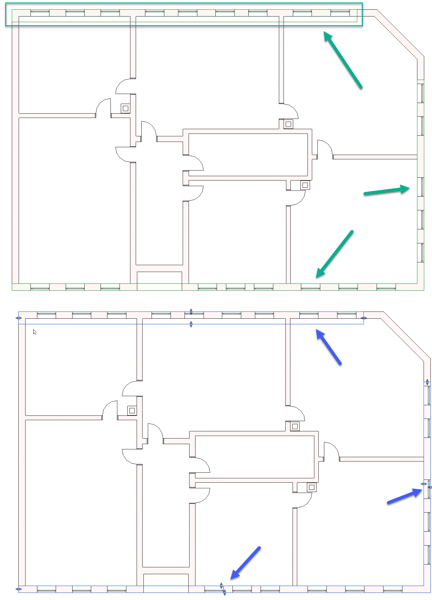 Die Ebenenlage sollte erst dann angepasst werden wenn ein ggf. vorhandens Regelgeschoß durch kopieren eingefügt wurde. Andernfalls kann es passieren das Bauteile nicht korrekt an die begrenzenden Ebenen angepasst und daher mit einem Ebenenversatz platziert werden. Dies führt zu vermeidbaren Nacharbeiten.